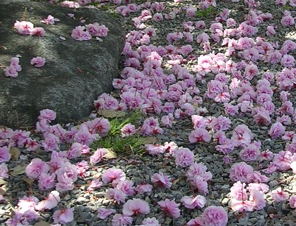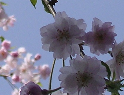 | 4月15日 本日は晴天なり 近頃は晴れると気温が20℃を越す 日陰は気持ちよく過ごせるけど 日向にいると汗ばんでくるぐらいです 緑の葉が目立ち始め 風が吹くと淡いピンクの花びらが 青空に舞い上がる 職場の近くの公園にて。 |