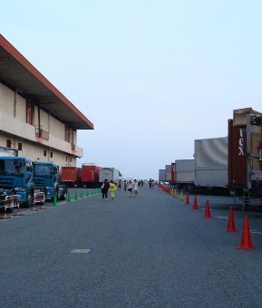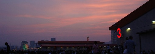 | 開始30分前に第3突堤に到着 既に多くの人がいましたが スペースは充分ある穴場ですv コンクリートの上にビニールを敷いて 開始を待っていると〜 | ![]() |