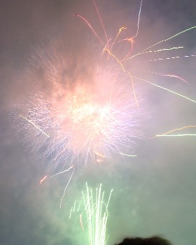 | 20時20分 終了。 風下になってしまって 煙で花火が見えない場面も ちょくちょくありました(+_+) 花火の残骸(?)も飛んでくるし〜(~_~;) 花火鑑賞は風上を確保すべし! |