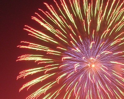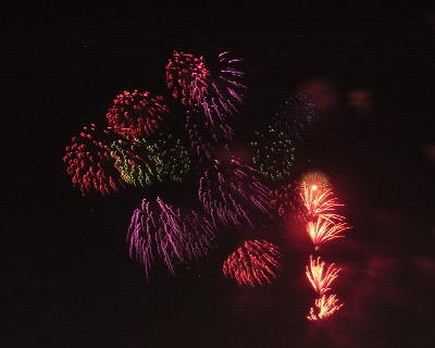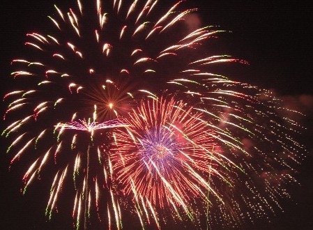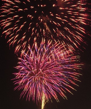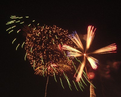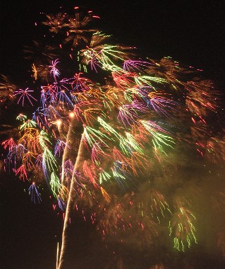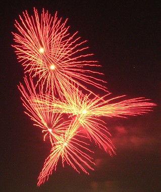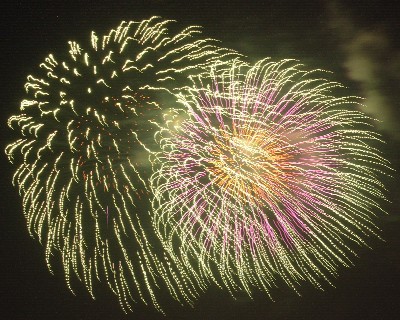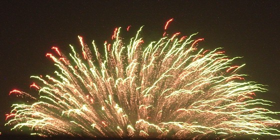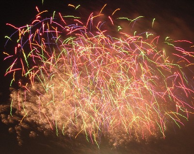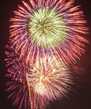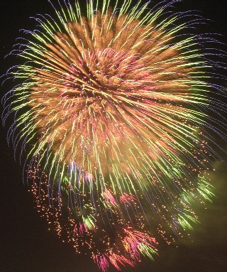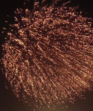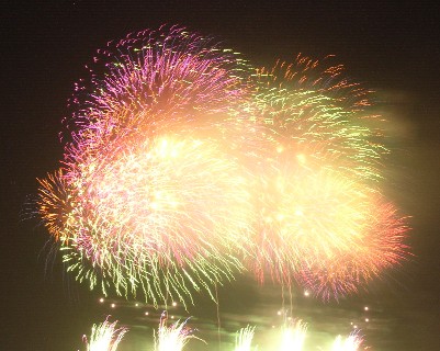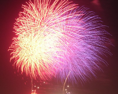 近い分、花火が大きくてカメラに納まりきれず〜(+_+) 高く上がると首がちょっと辛かったり〜(~_~;)